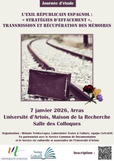 Journée d'études « L'exil républicain espagnol : entre stratégies d'effacement et transmission des mémoires » organisée par Mélanie Trédez-Lopez